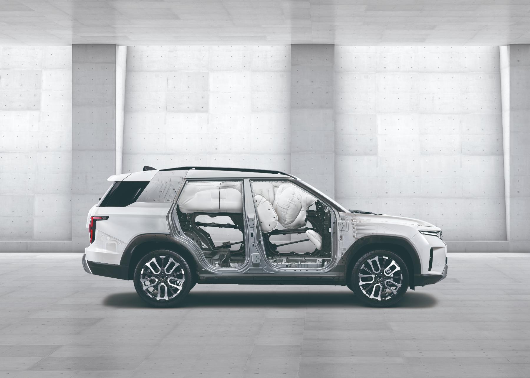 Torres ensures top-notch safety standards with no compromises. Featuring best-in-class safety measures, including eight airbags and the highest utilization of high-tensile steel plate, it guarantees the utmost protection for both driver and passengers. Plus, with a seatbelt reminder alert for all five seating positions, safety is prioritized from the moment the car starts its journey.