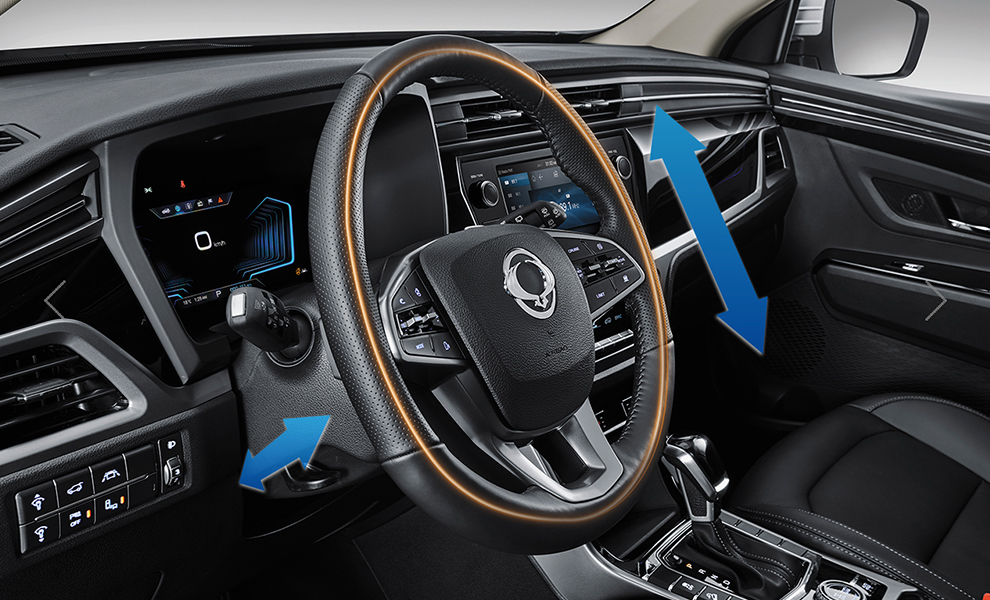 The spacious cabin of the Korando is appointed with premium materials that pamper and isolate you from the hustle and bustle of the outside world. Whether your journey is long or short, the Korando guarantees pure traveling delight.