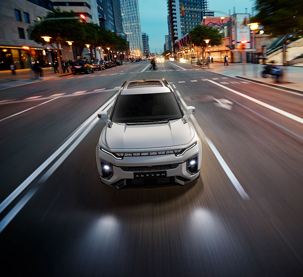 The Actyon’s unique beauty comes to life with KGM’s signature design, inspired by the Korean flag and the Big Dipper, featuring a sleek and sophisticated lighting architecture. The sleek roofline, striking contours, and gracefully sculpted rear give this urban SUV coupe a bold and dynamic presence. Thoughtfully designed rear details add a touch of luxury, making it ideal for those who value elegance and sophistication.