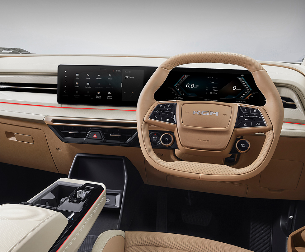 The cutting-edge infotainment system boasts a 12.3-inch panoramic display, powered by KGM’s advanced Athena 2.0 GUI platform. Designed for an intuitive and immersive experience, it seamlessly connects technology with your senses for ultimate driving enjoyment.