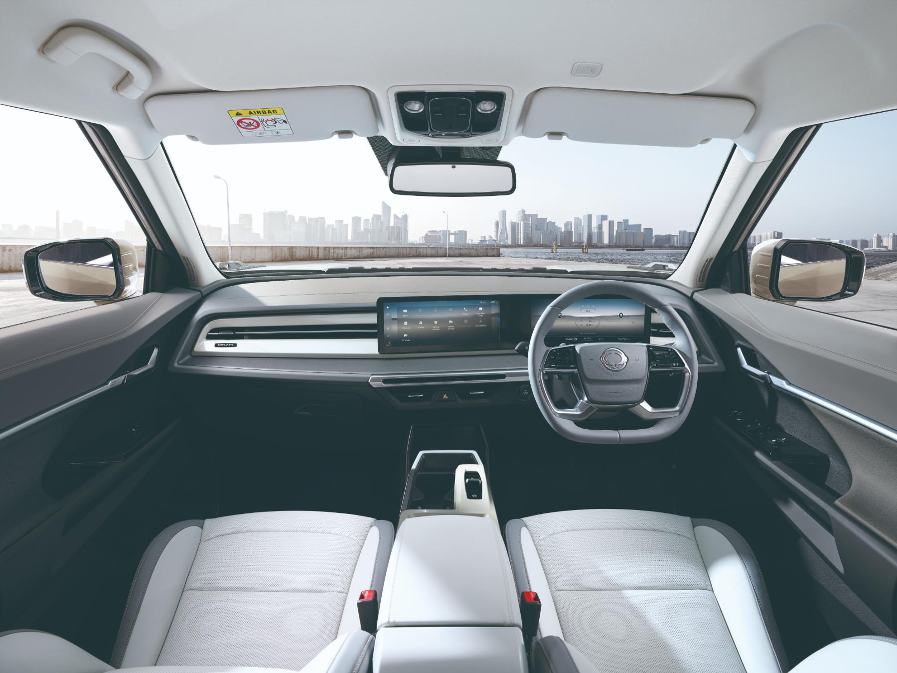 The future-proof, slim and wide interior design enhances driver visibility and convenience for an unparalleled driving experience. To minimise the number of physical buttons and controls and simplify driving, the Torres EVX features an ergonomically designed dashboard with a futuristic, 12.3-inch digital interface.