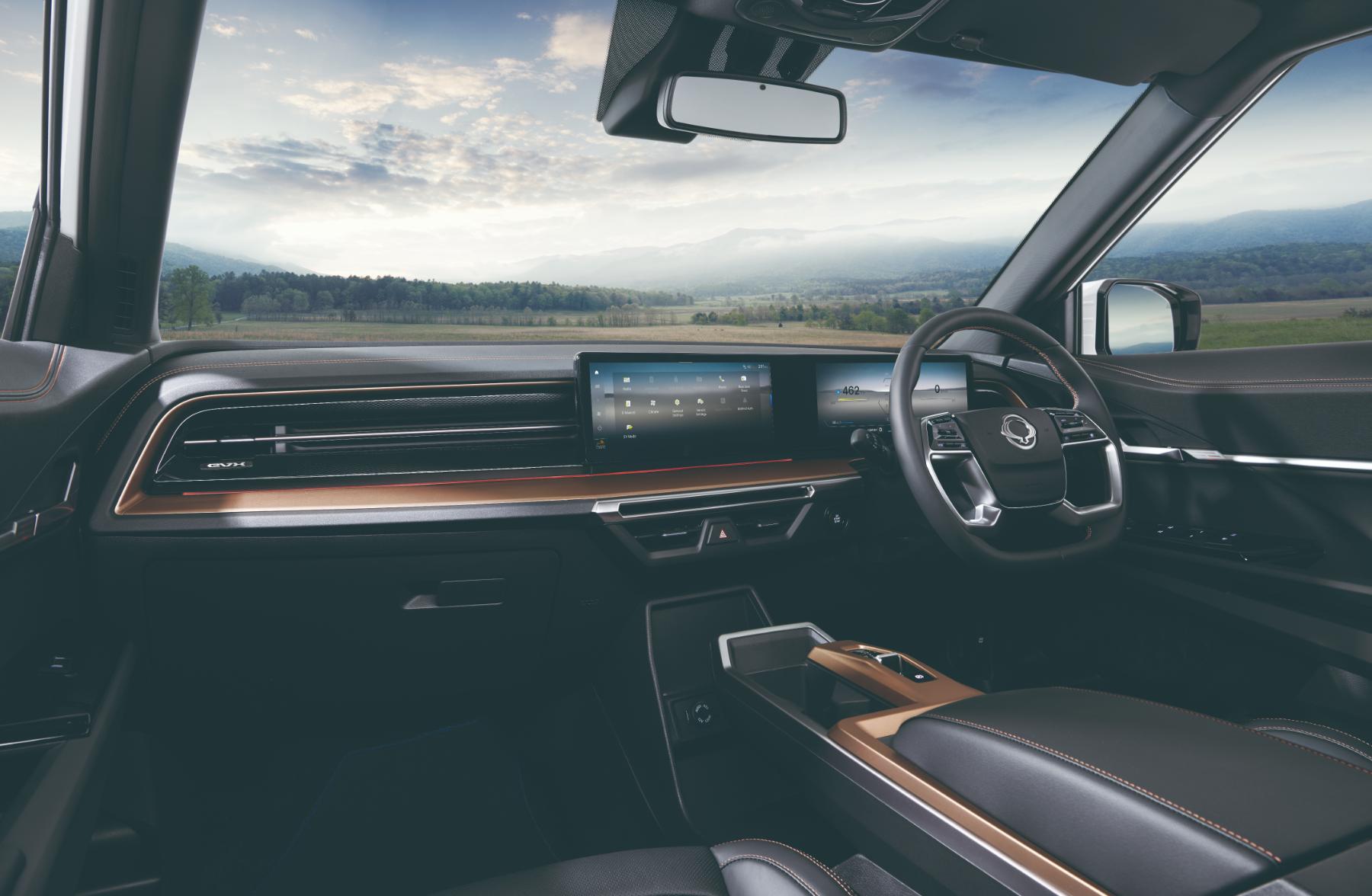 The future-proof, slim and wide interior design enhances driver visibility and convenience for an unparalleled driving experience. To minimise the number of physical buttons and controls and simplify driving, the Torres EVX features an ergonomically designed dashboard with a futuristic, 12.3-inch digital interface.
