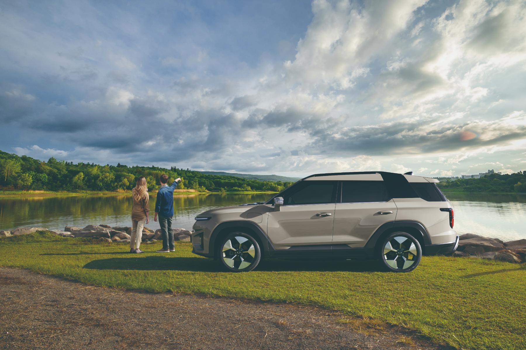 “Powered by Toughness” embodies KGM’s design principle, evident in the bold character lines and robust detailing of the Torres EVX. Featuring horizontal LED daytime running lights, this vehicle exudes a sleek and distinctive aesthetic that captures attention effortlessly.
