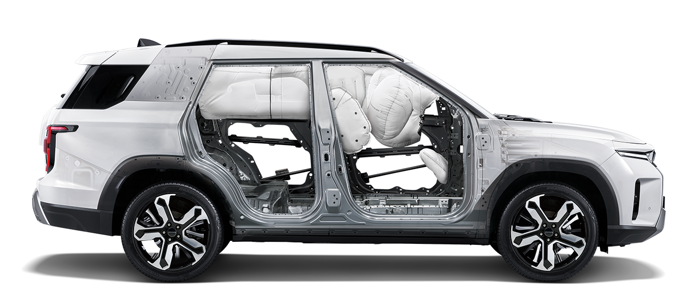 KGM’s advanced safety technologies combine robust fundamentals to protect you from every angle-from high-strength body structure to intelligent driver-assist systems. Best-in-Class 78% High-Tensile Steel & 7 Airbag System – Driver’s airbag, Passenger’s airbag, Front row side airbags (left/right), Curtain airbags (left/right) and Front row far side airbag. The advanced driving safety assistance system in the Torres actively responds to various potential hazards on the road, ensuring the safety of all passengers.